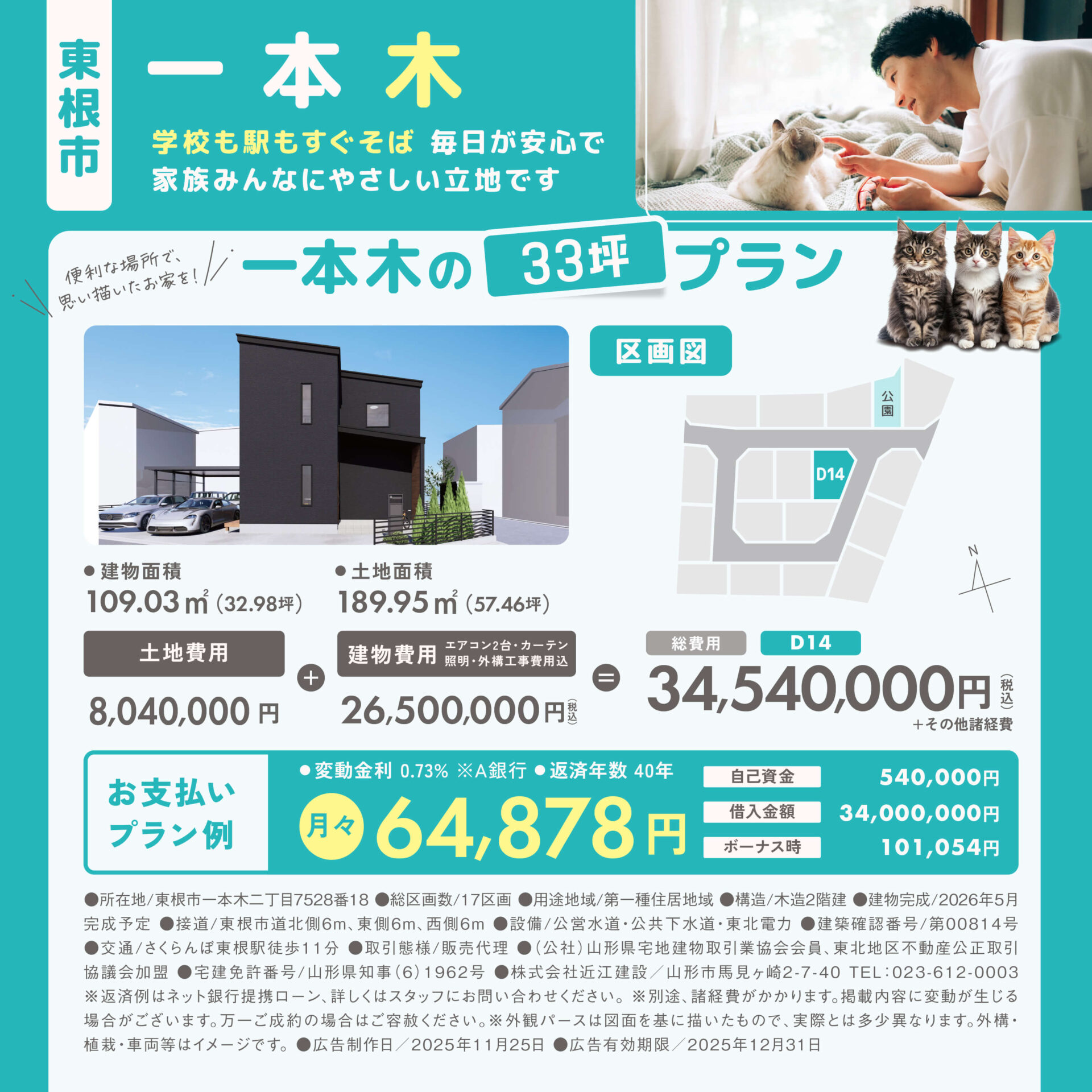 月々 64,878円〜(頭金54万円/40年返済)