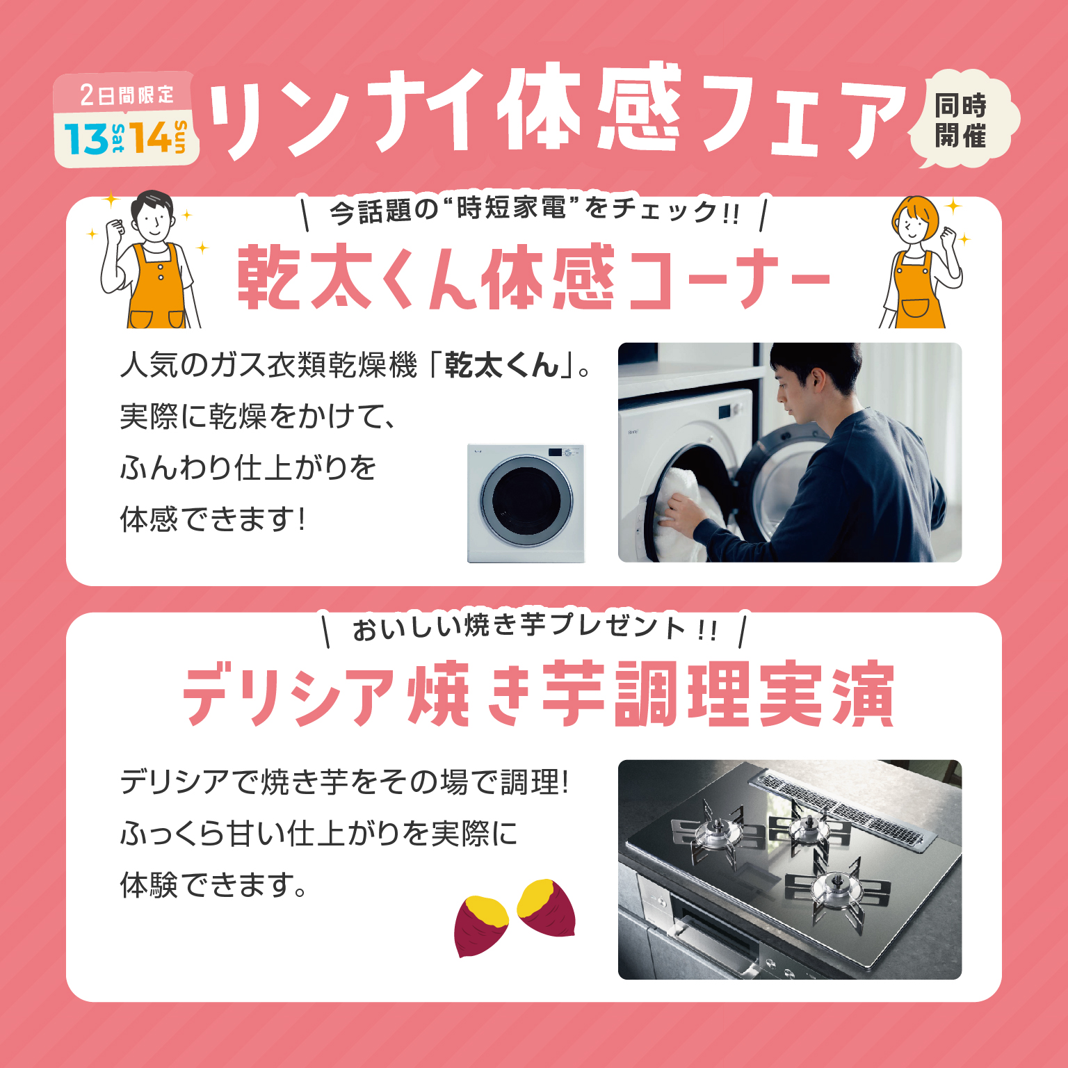 また、13日と14日の2日間限定で「リンナイ体感フェア」も同時開催いたします。