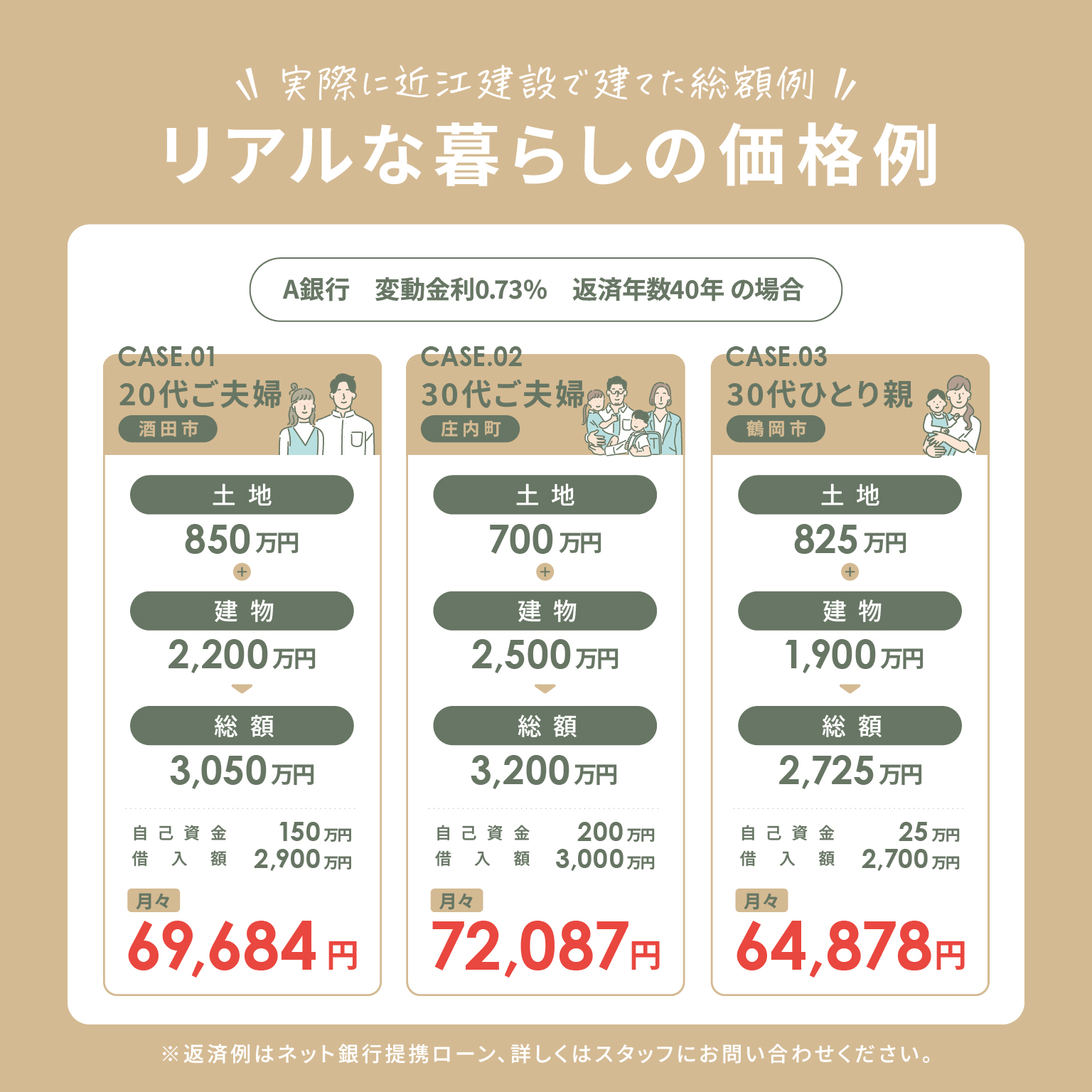 当日は、近江建設で実際に建てられたお客様の価格例も公開しております。土地代と建物代を含めた総額を分かりやすく掲載していますので、住まいづくりの参考にしていただけます。ご家族皆さまで暖かさの違いを体感しながら、快適な住まいづくりをご検討いただけるイベントとなっております。皆さまのご来場を心よりお待ちしております。