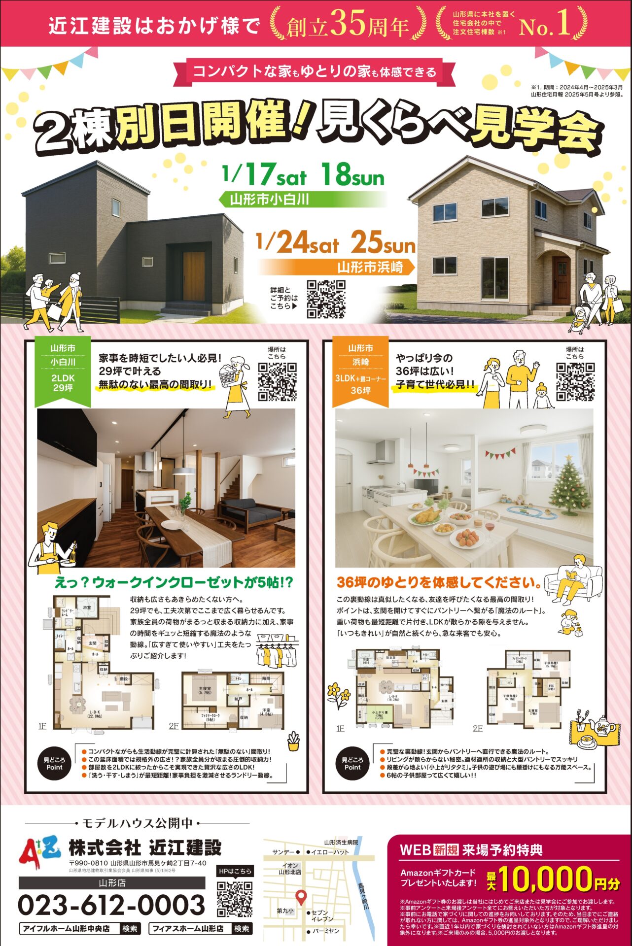 山形市で2棟見くらべ見学会開催|子育て世代に人気の間取りを比較