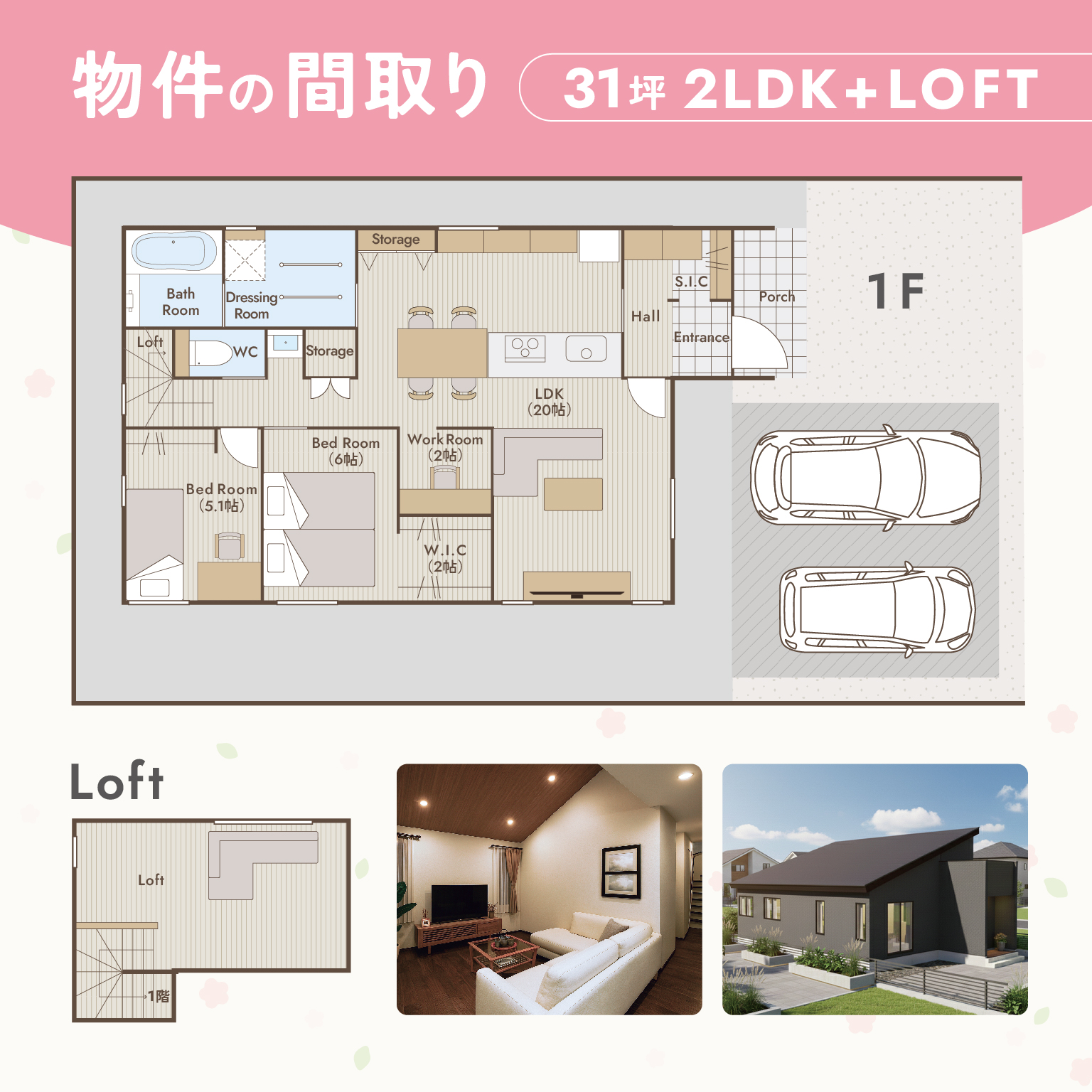 31坪というコンパクトなサイズながら、勾配天井のあるLDKやロフト空間が広がりを感じさせてくれます。