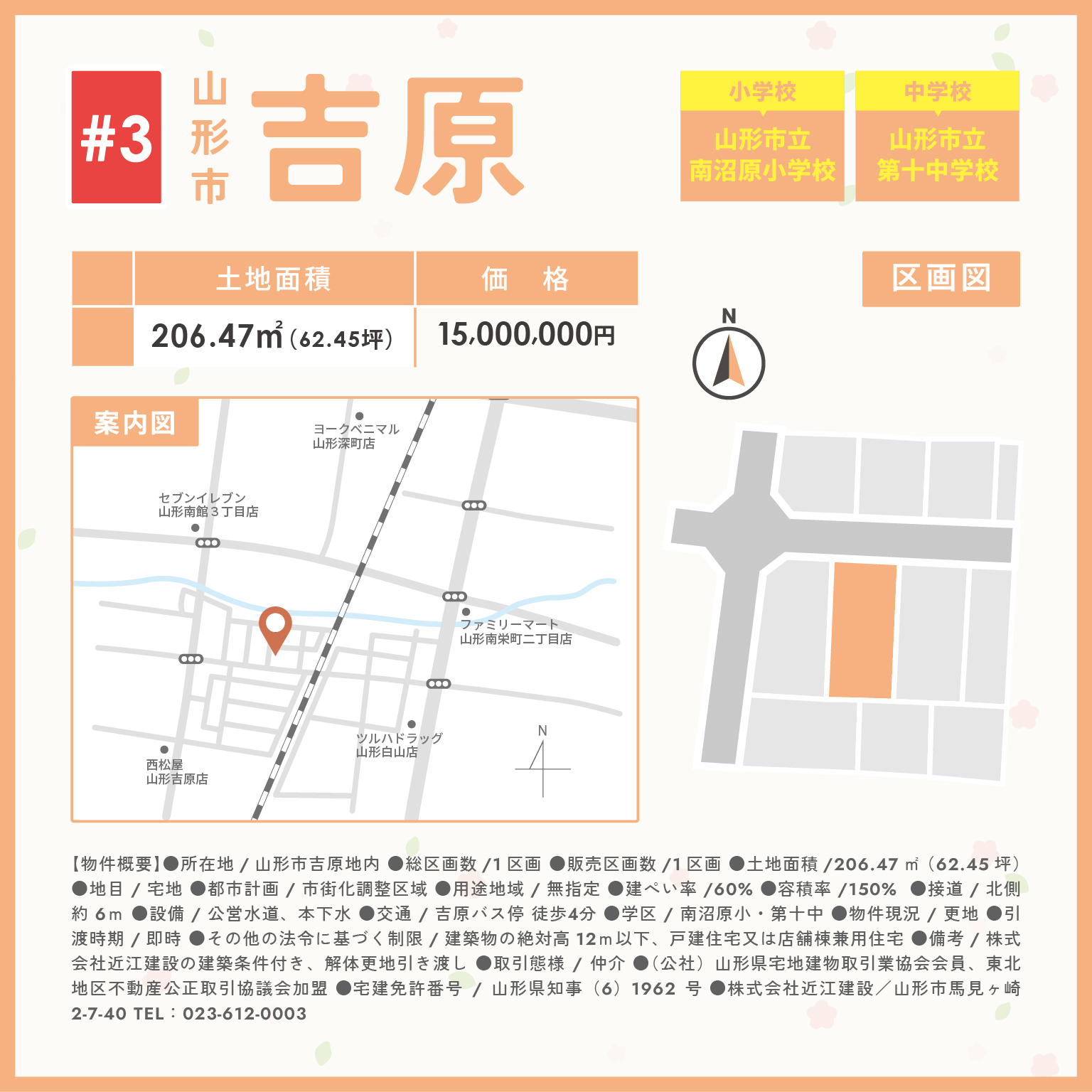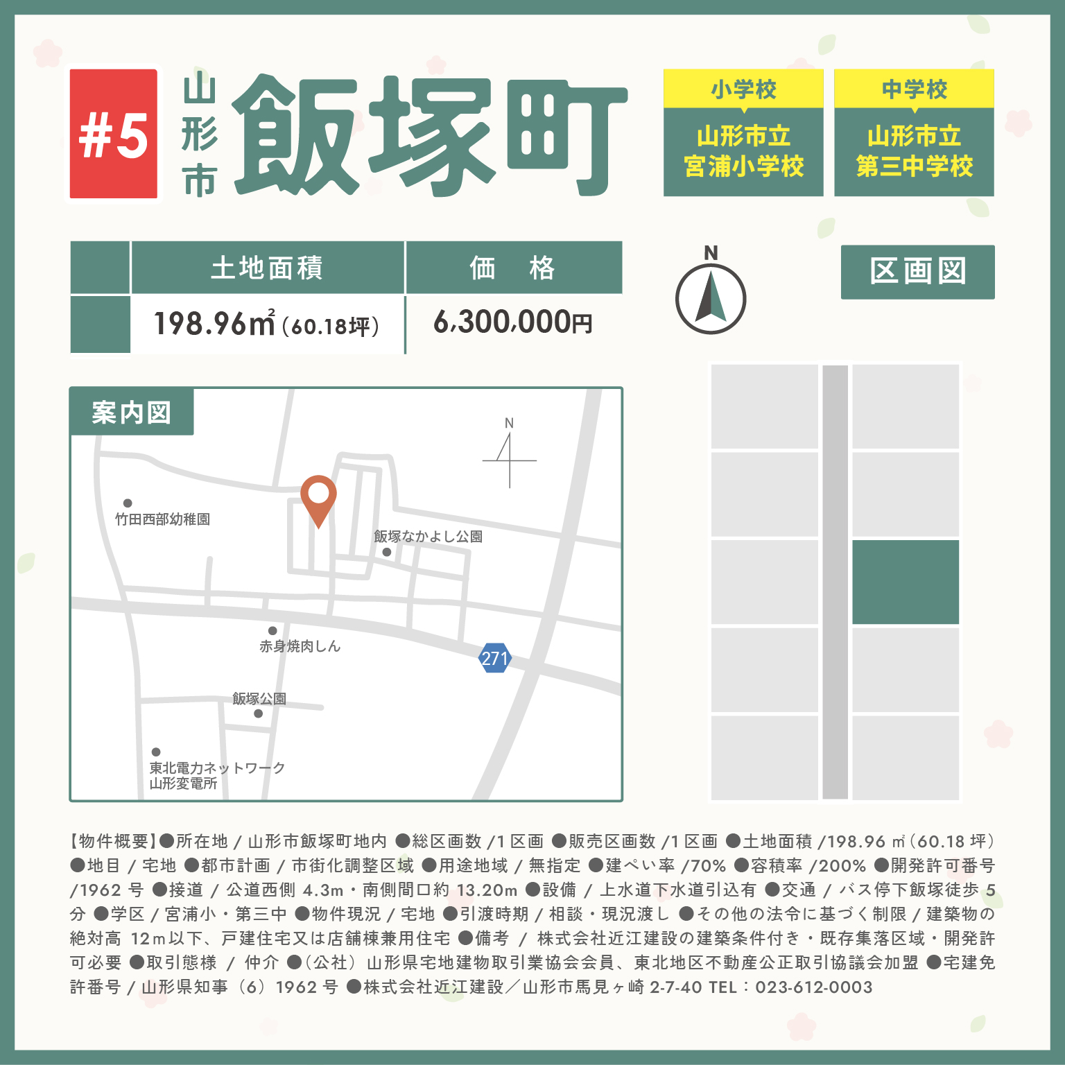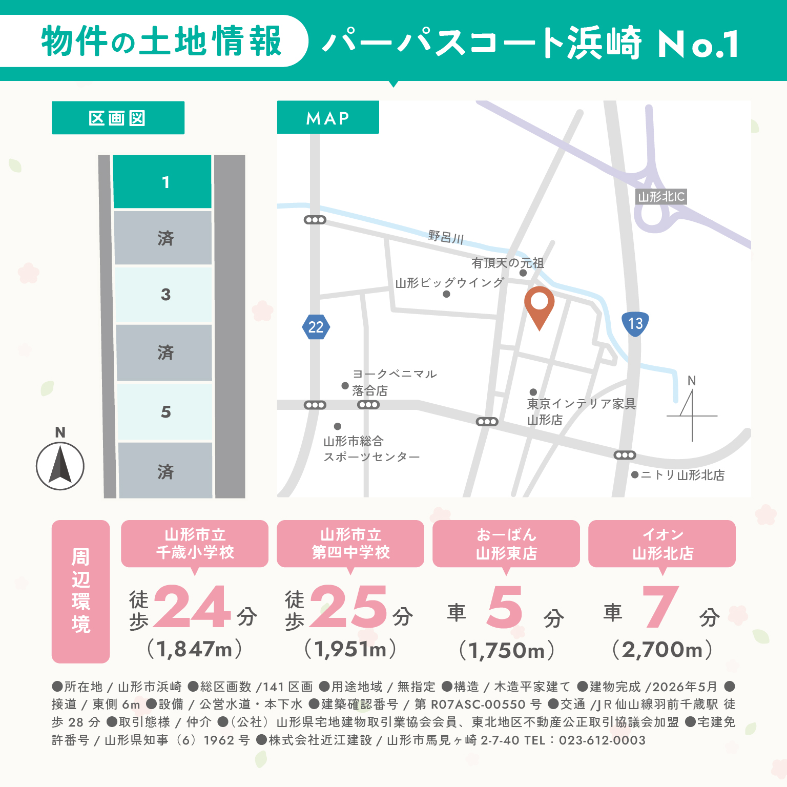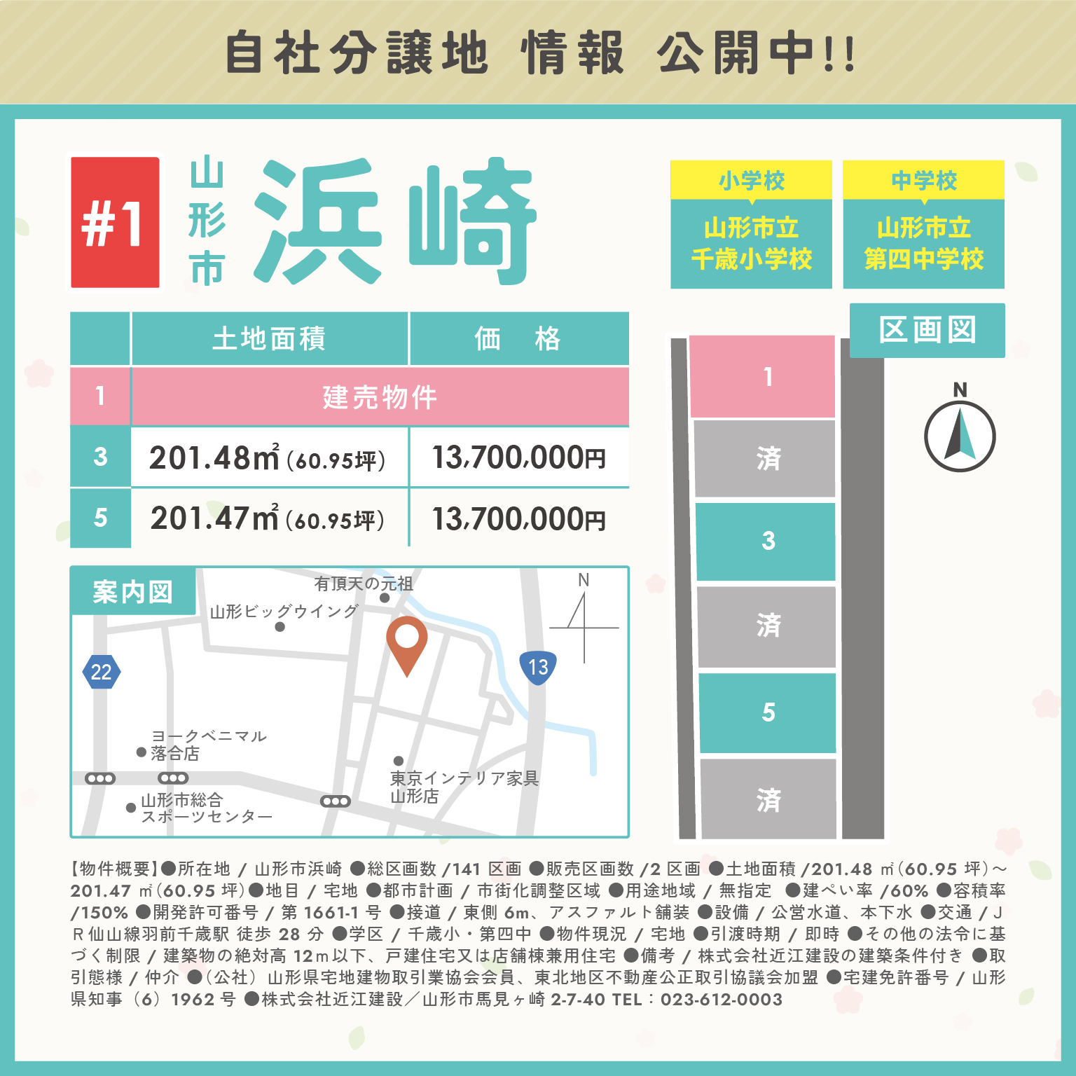 山形市浜崎の住宅地にある区画で、共働きのご家族にとって生活のしやすさが整った場所です。