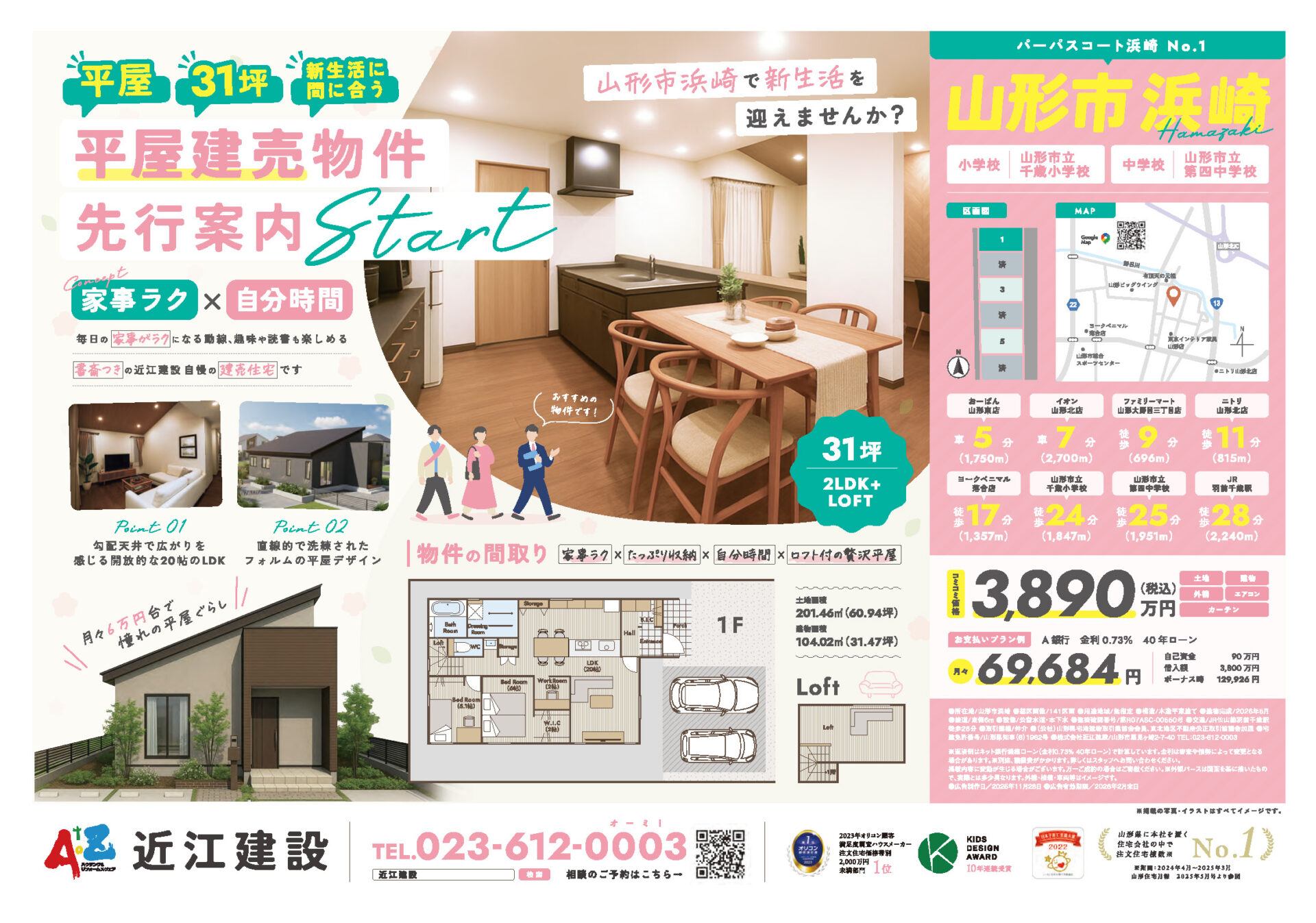 山形市浜崎エリアにて、平屋建売物件の先行案内を開始!