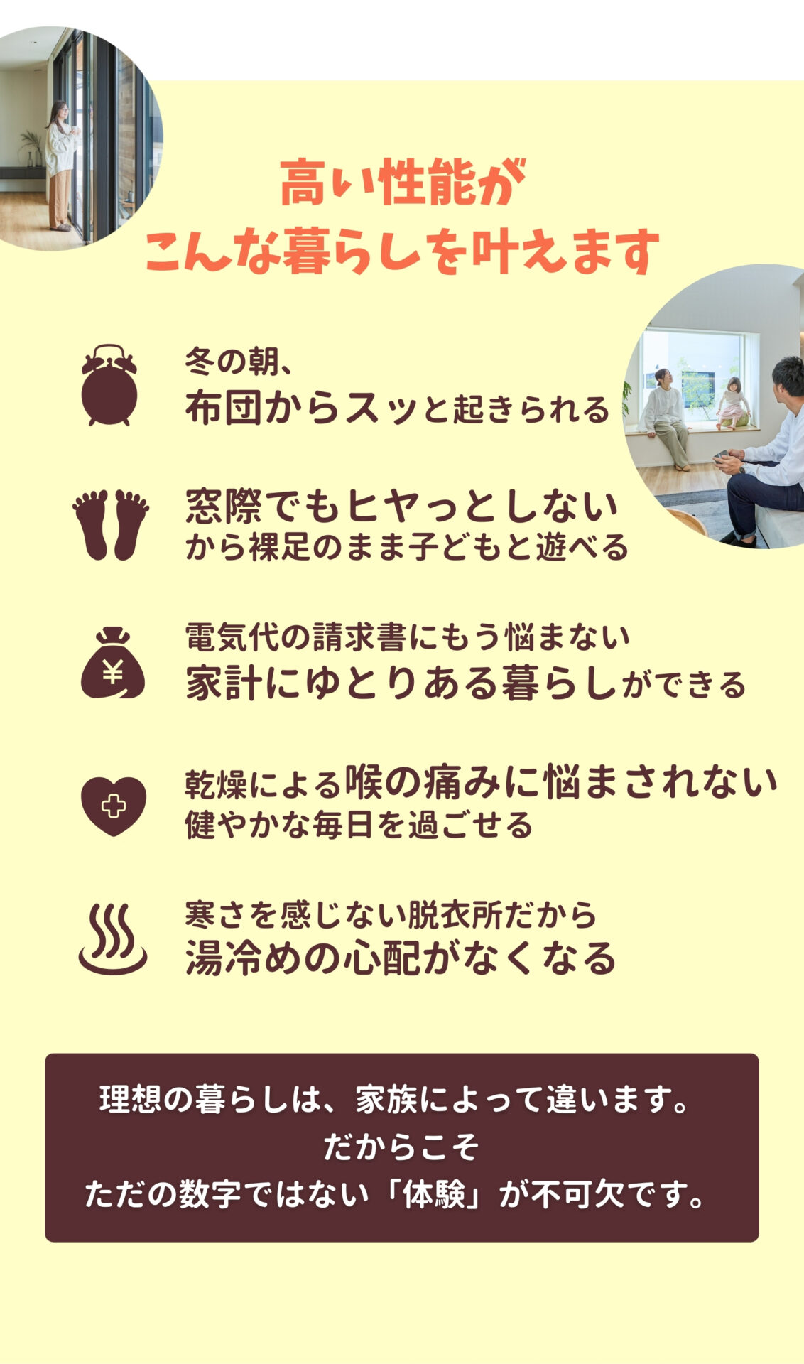 「暖かい家」は、数字だけでなく、日々の暮らしの快適さとして実感できます。