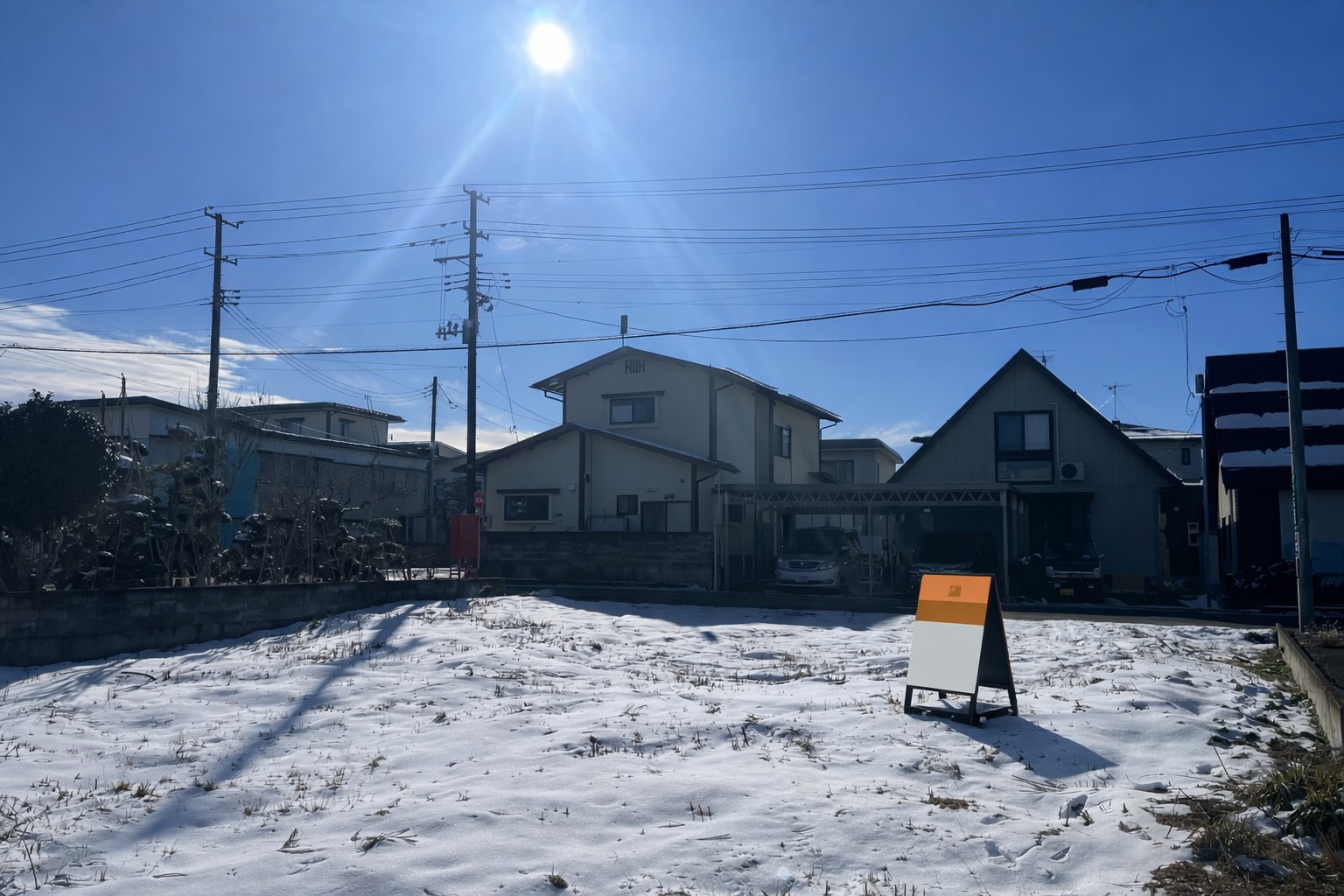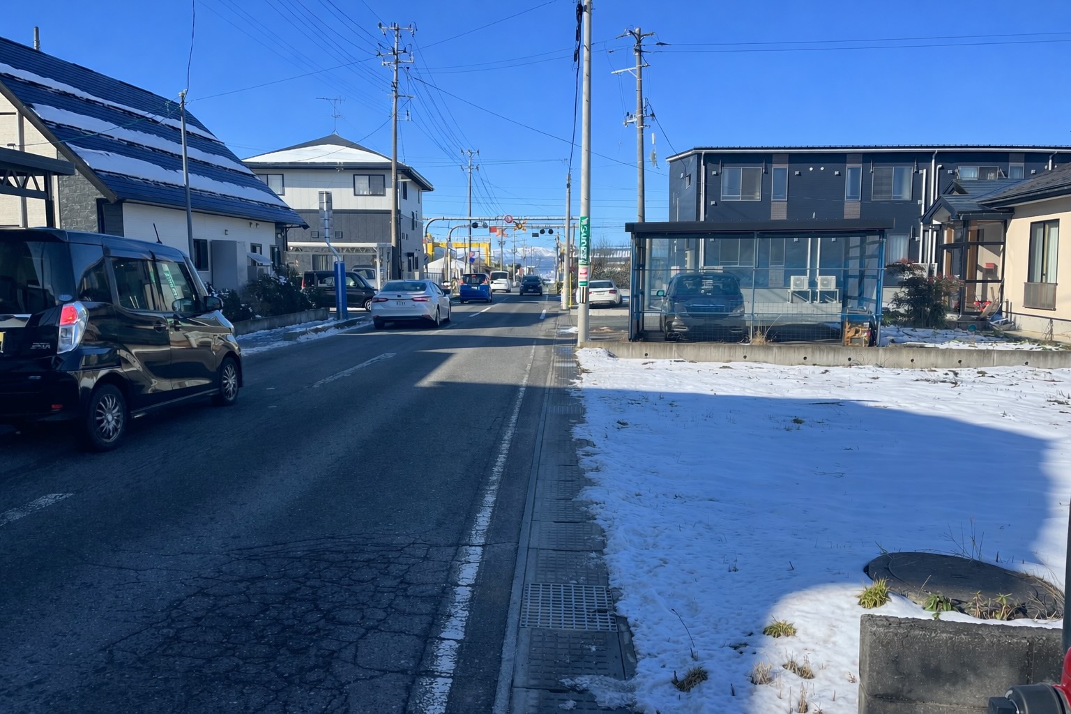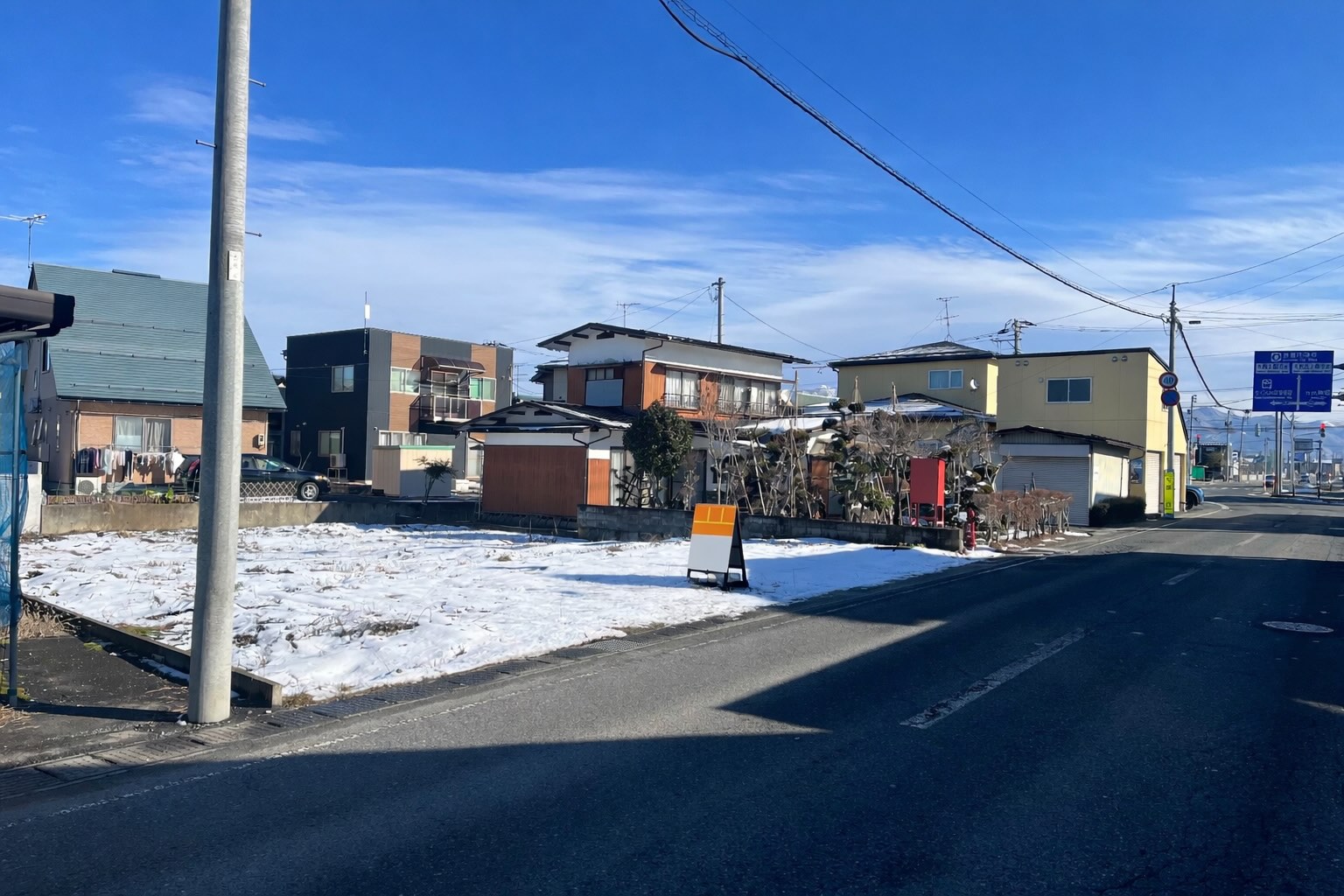 【東根市神町北】土地98坪、陽当り良好、南道路、スーパー 徒歩10分以内、前道6m以上