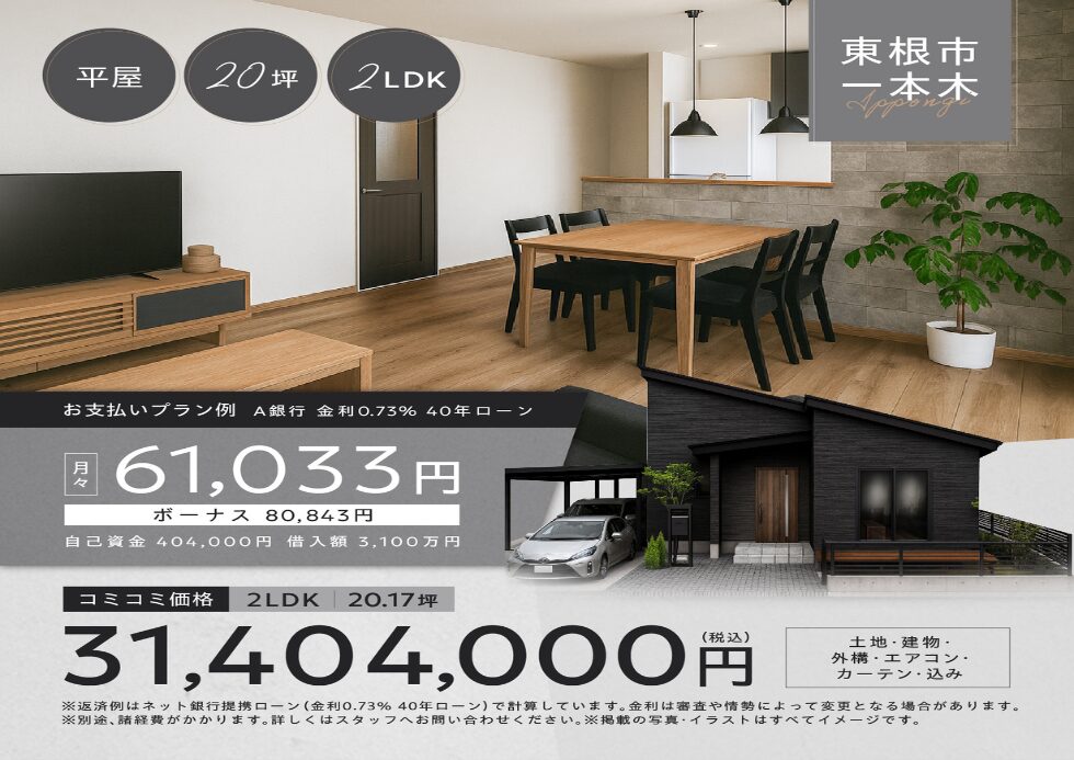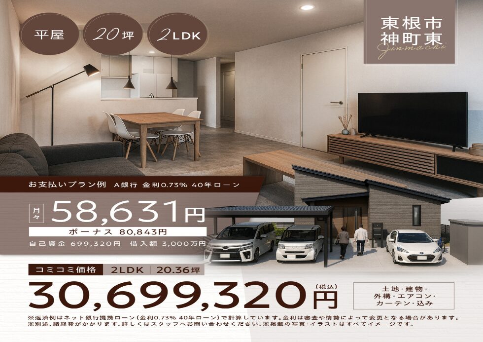 【山形市内 平屋物件】20帖LDK オープンキッチン、月々6万円代から